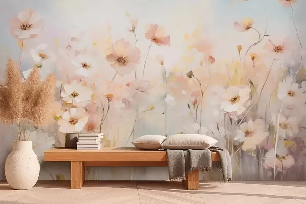 Тапете за зид Дивље цвеће у пастелним нијансама у стилу акварела бр. w09280