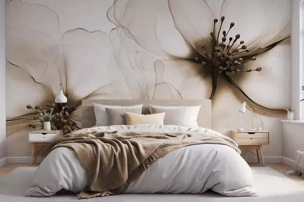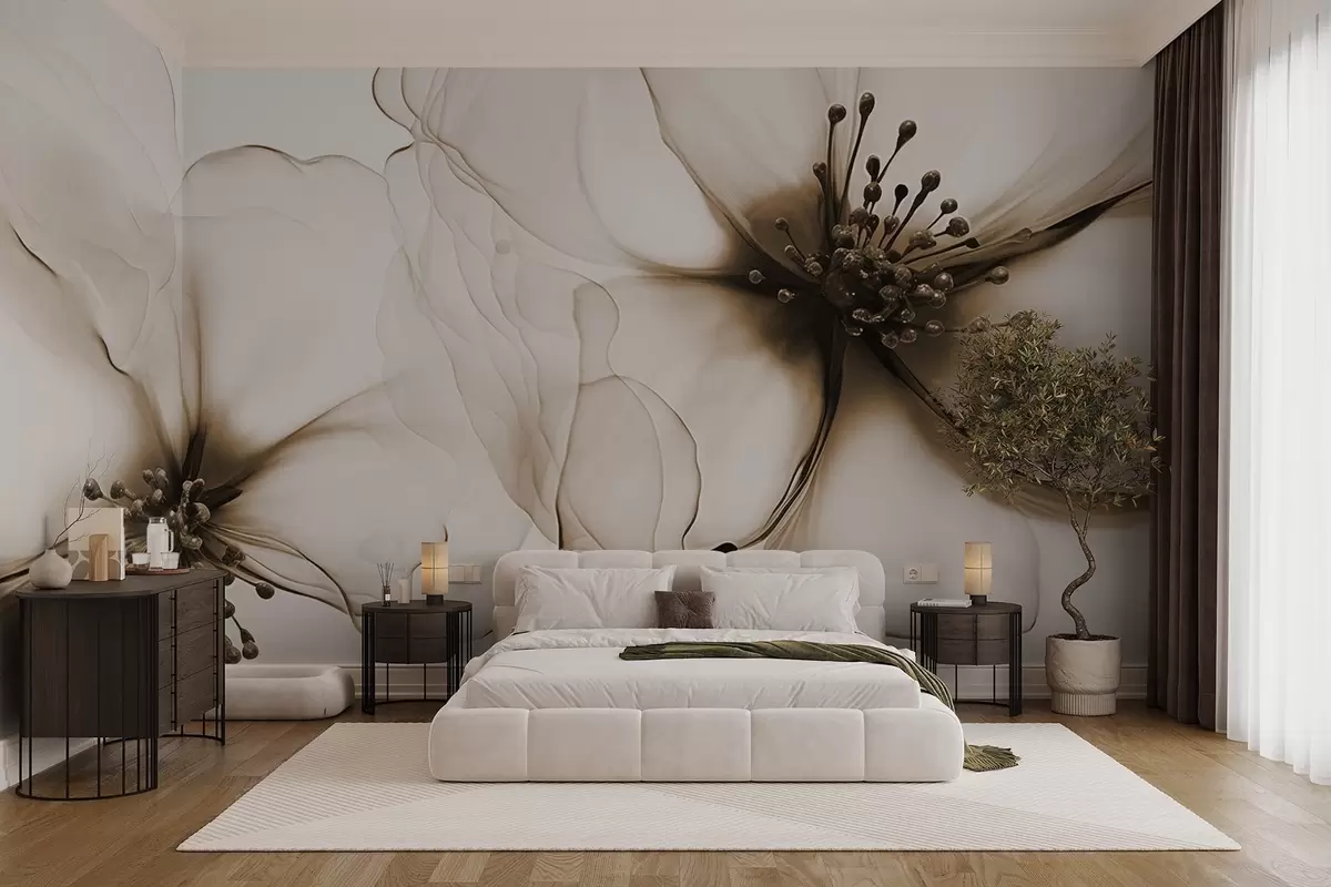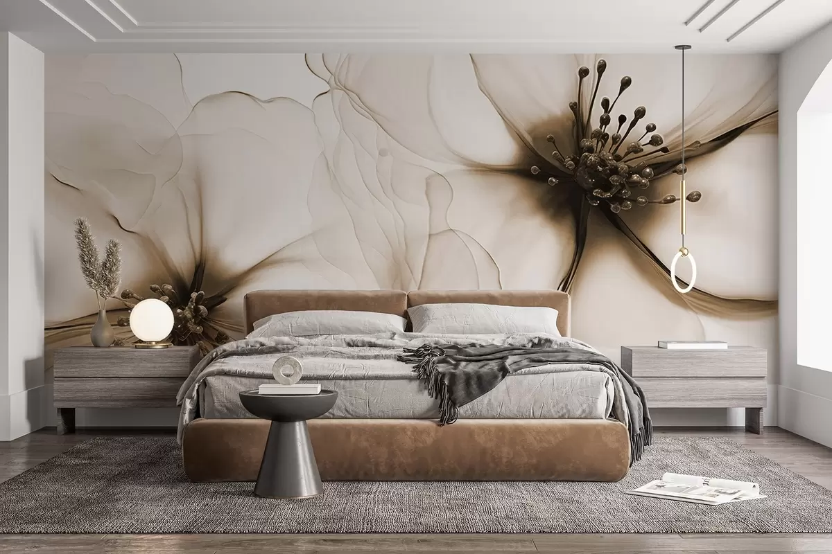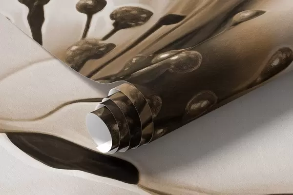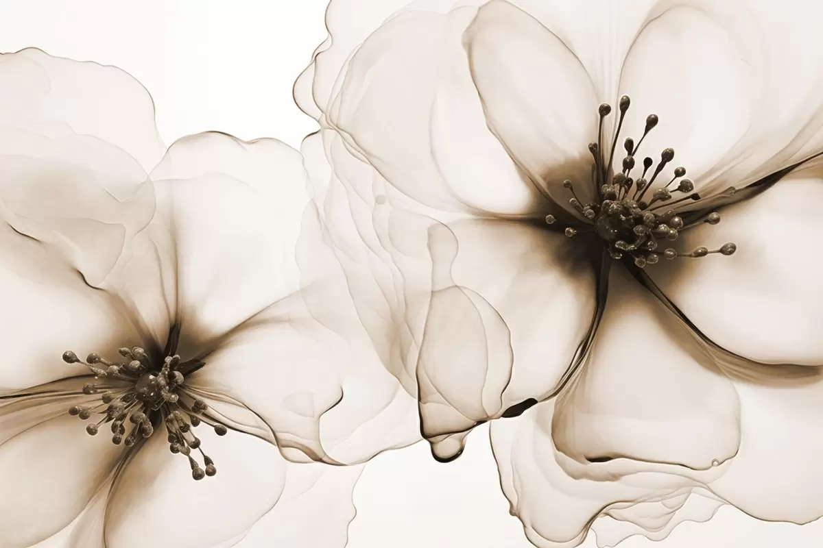 Тапете за зид Два провидна текстурирана смеђа цвета са видљивим прашницима, преклапајућим нежним латицама и меком, текућом текстуром бр. w09295