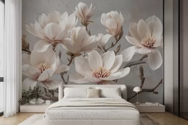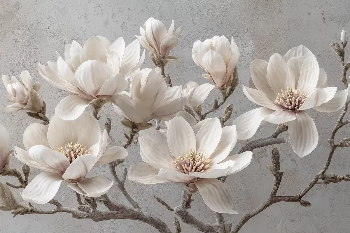 Тапете за зид Гране магнолије са великим светлим цветовима у пригушеним тоновима бр. w09305