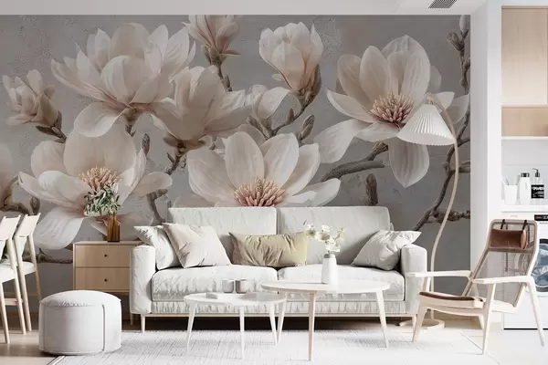wall murals Гране магнолије са великим светлим цветовима у пригушеним тоновима w09305