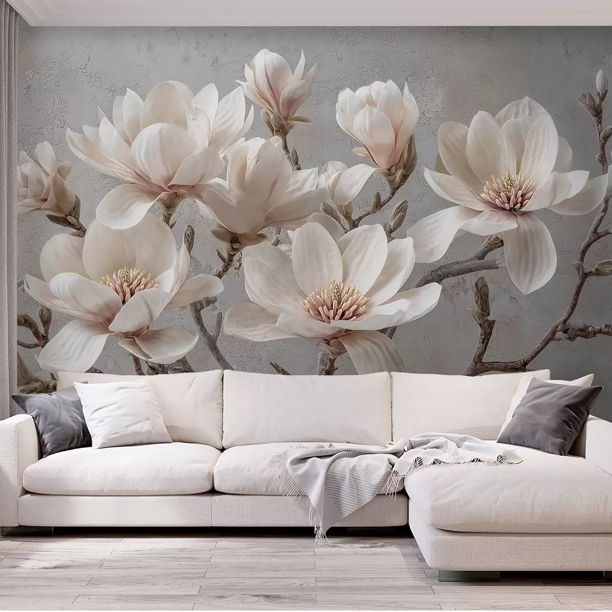 Тапете за зид Гране магнолије са великим светлим цветовима у пригушеним тоновима бр. w09305