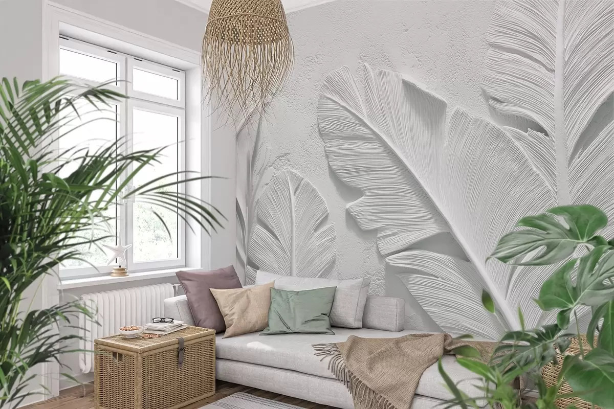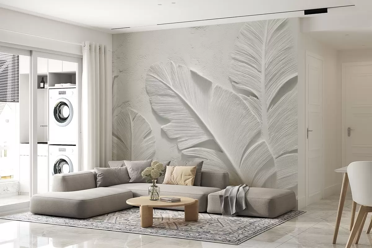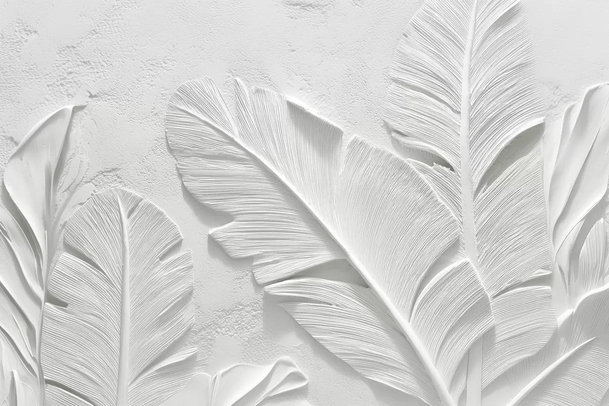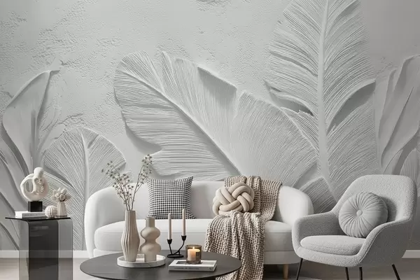 Тапете за зид Текстурирано сиво лишће на позадини са рељефом од вештачког гипса бр. w09307
