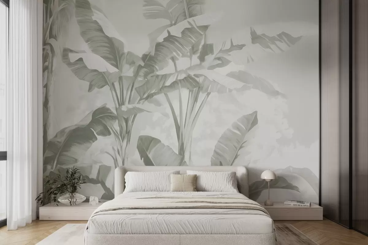 Тапете за зид Тропски листови банане у нежним зеленим нијансама бр. w09311v1