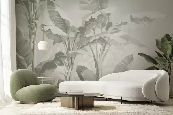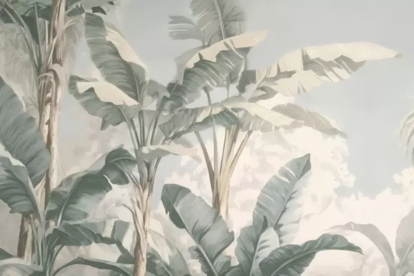 Тапете за зид Тропски листови банане у нежним зеленим нијансама бр. w09311v1