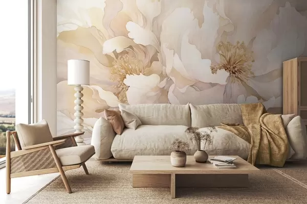 Тапете за зид Цветови текстуре божура са нежним латицама у нијансама крем брескве и светло ружичасте са меком текстуром сличном акварелу бр. w09321