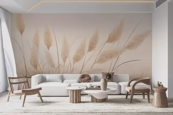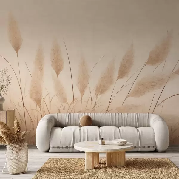Тапете за зид Мекана беж пампас трава на пољу бр. w09324