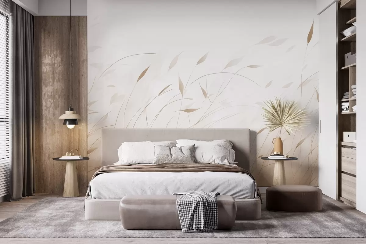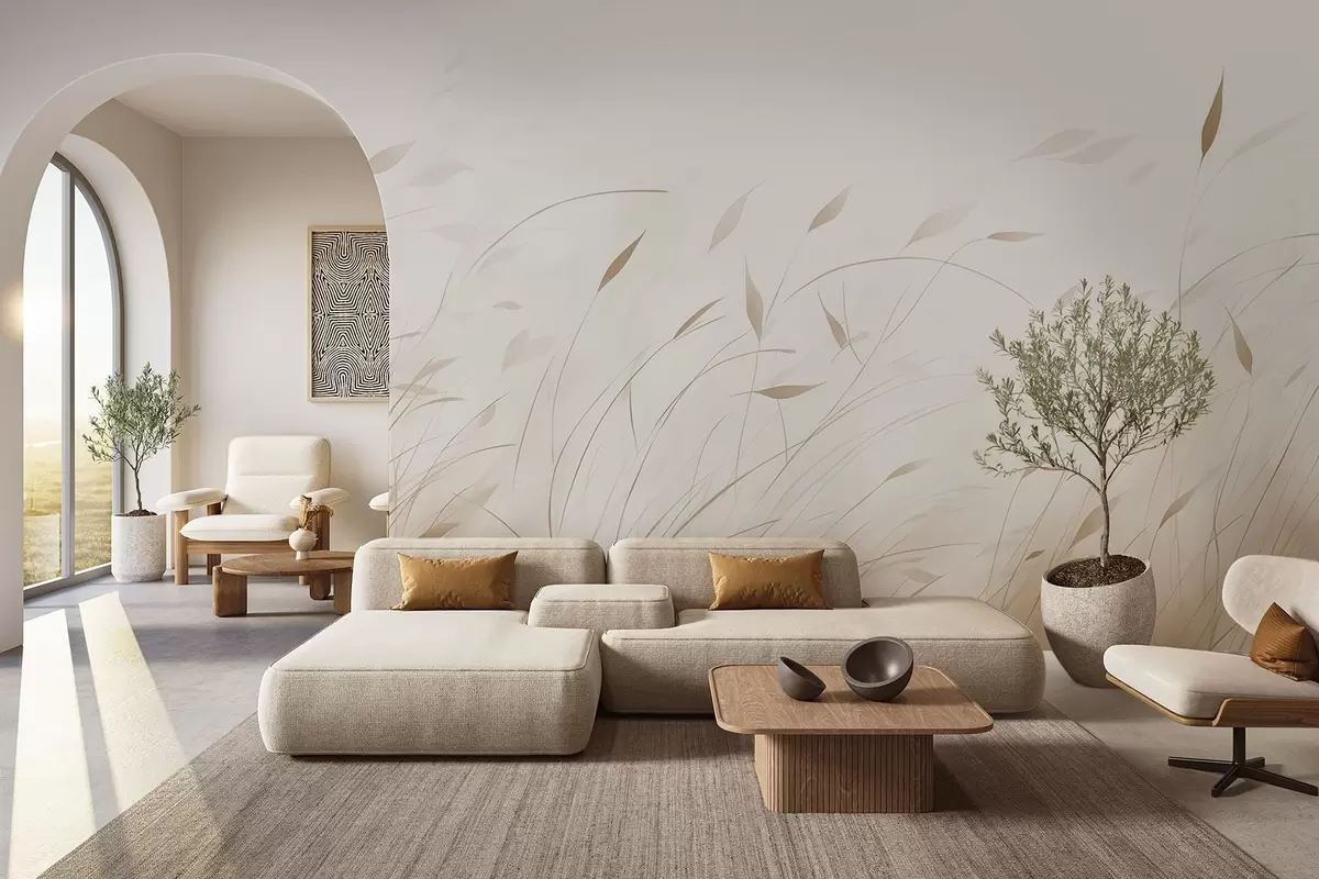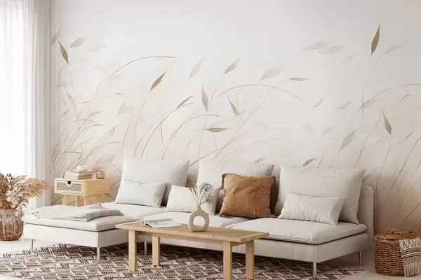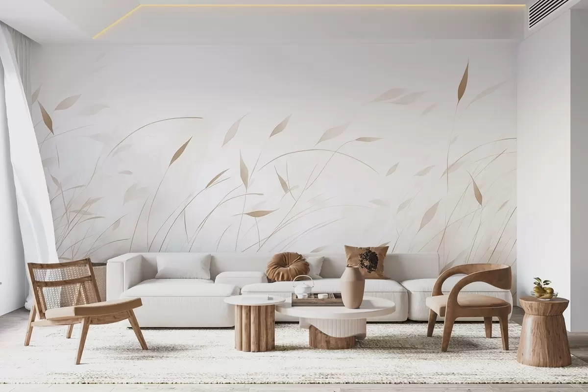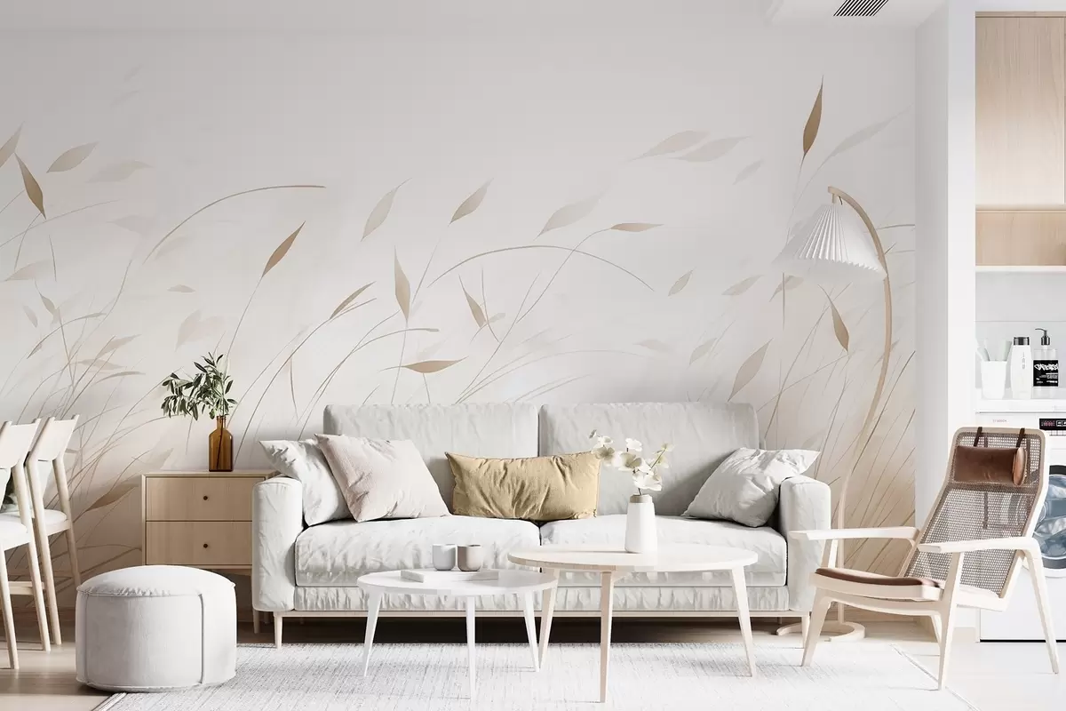 Тапете за зид Трава на ветру у акварел стилу у беж нијансама бр. w09331v1