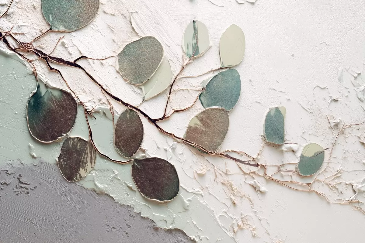 Тапете за зид Декоративно дрво са лишћем и имитацијом текстуриране позадине бр. w09357