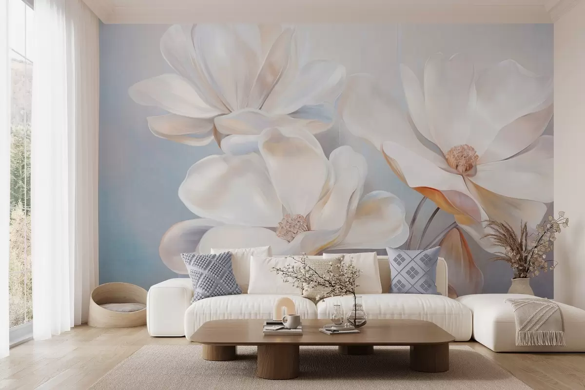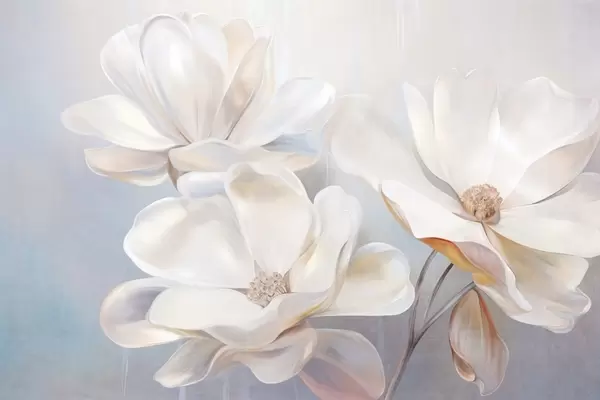 Тапете за зид Бели фантастични цветови магнолије са нежним текстурираним латицама, мека, апстрактна позадина бр. w09373