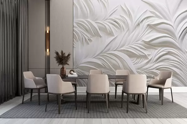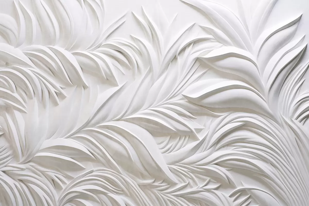 Тапете за зид Апстрактни текстурирани бели листови и цветни елементи, минималистичка естетика бр. w09378