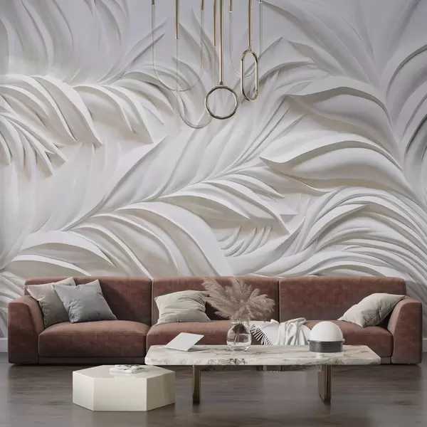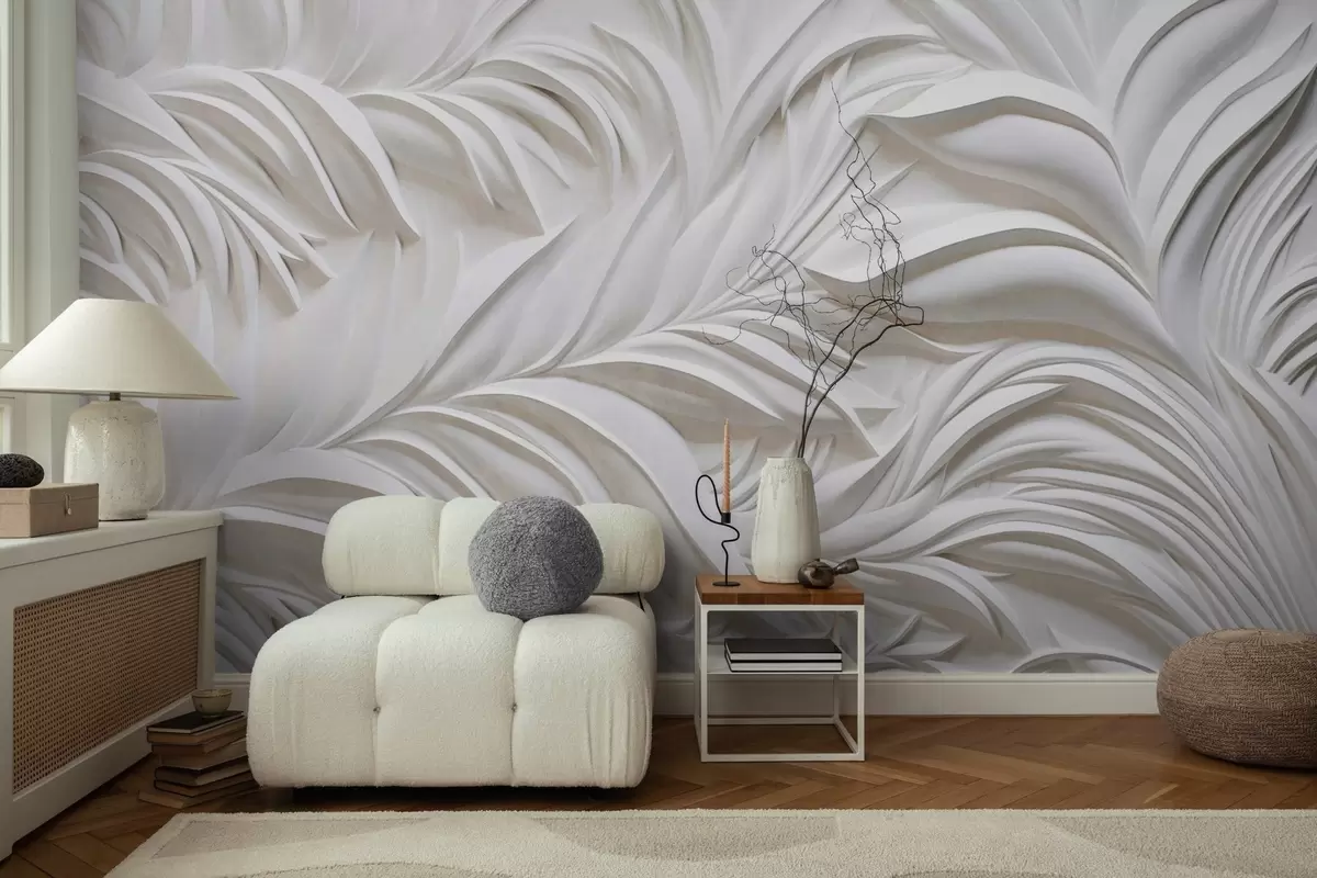 Тапете за зид Апстрактни текстурирани бели листови и цветни елементи, минималистичка естетика бр. w09378