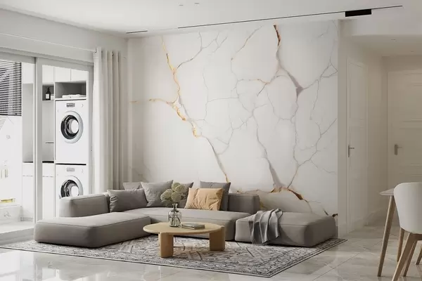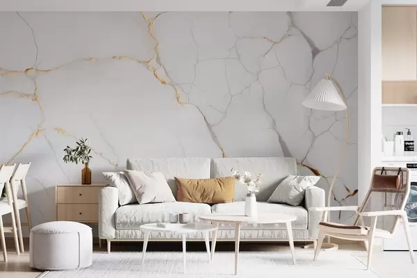 Тапете за зид Имитација мермера са финим пукотинама и жутим жилама бр. w09390