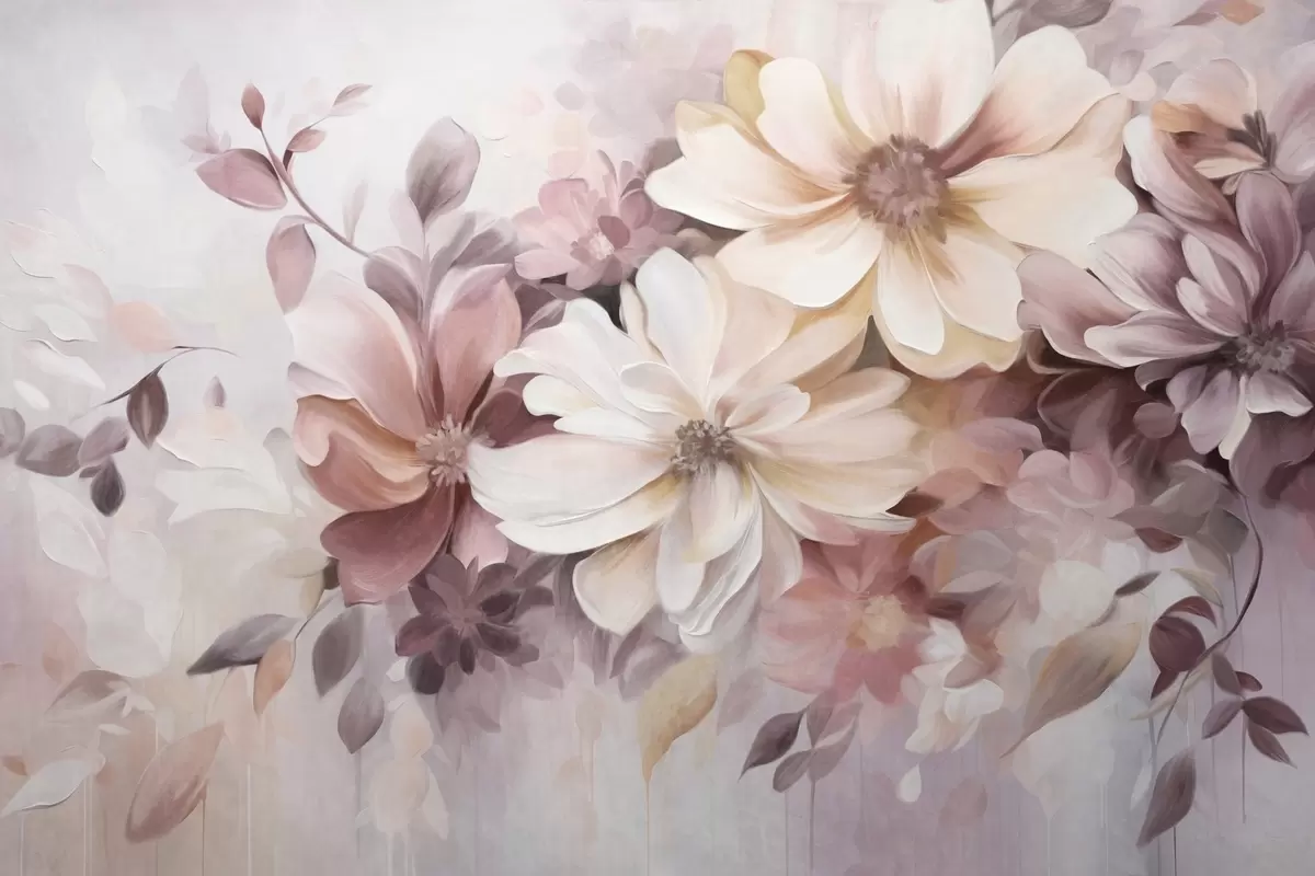 Тапете за зид Цветни аранжман са великим текстурираним цветовима нежних боја у нијансама бордо, брескве и беле, са нежним листовима бр. w09398