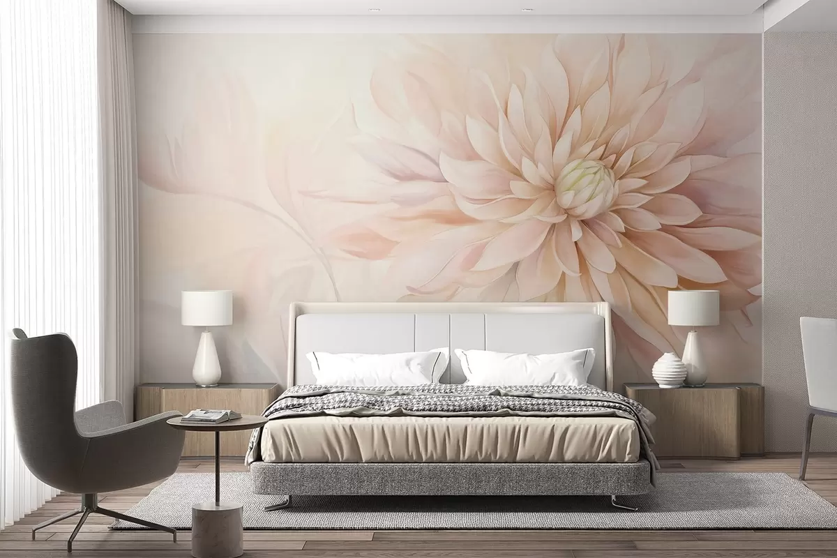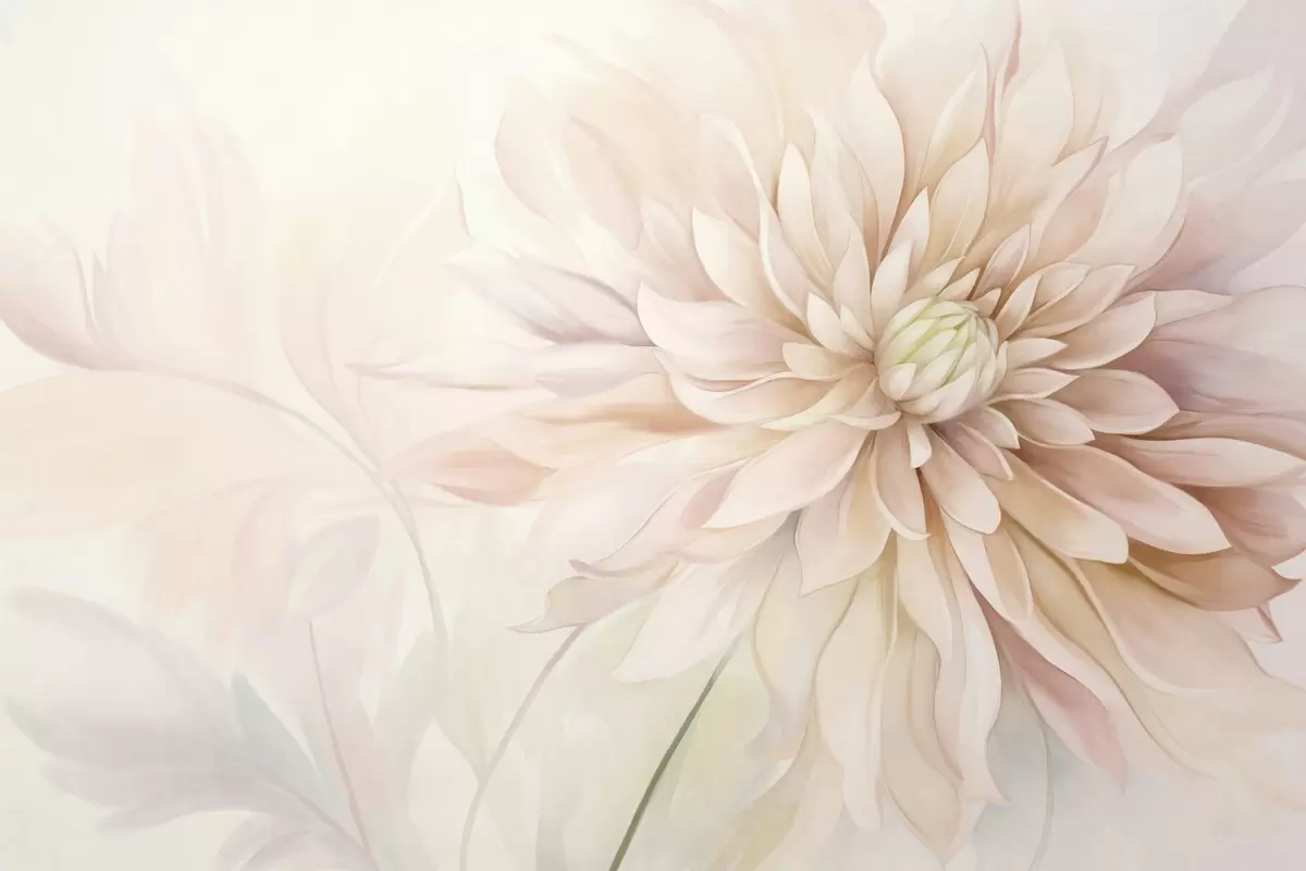 Тапете за зид Светло ружичасти цвет далије са много латица, мека текстурирана пастелна позадина са нотама зелене и беж боје бр. w09470
