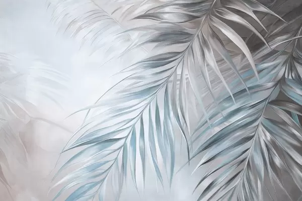 Тапете за зид Палмино лишће са зеленим тоновима, светла текстурирана позадина са меким бојама, елегантан тропски стил бр. w09475v2
