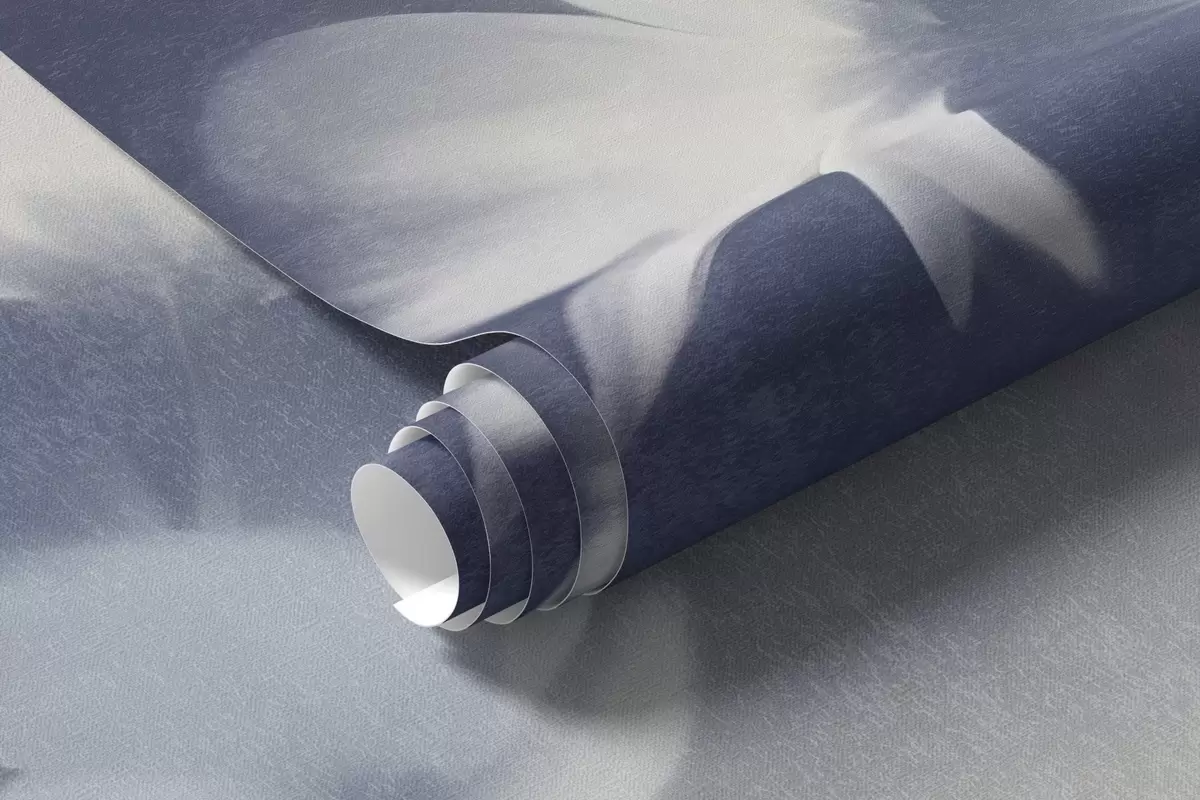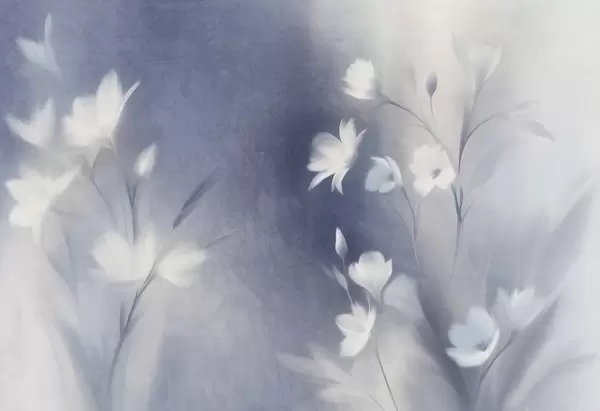 Тапете за зид Бели текстурирани цветови са дугим стабљикама, меки пупољци на замућеној позадини плавих и белих нијанси бр. w09484