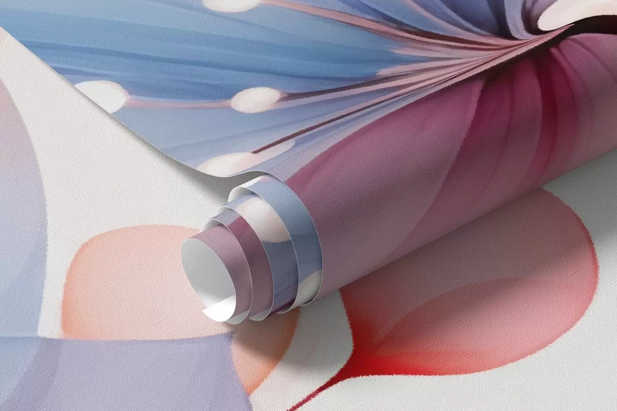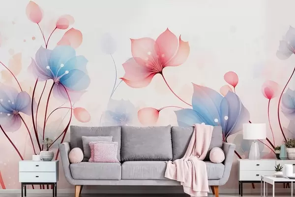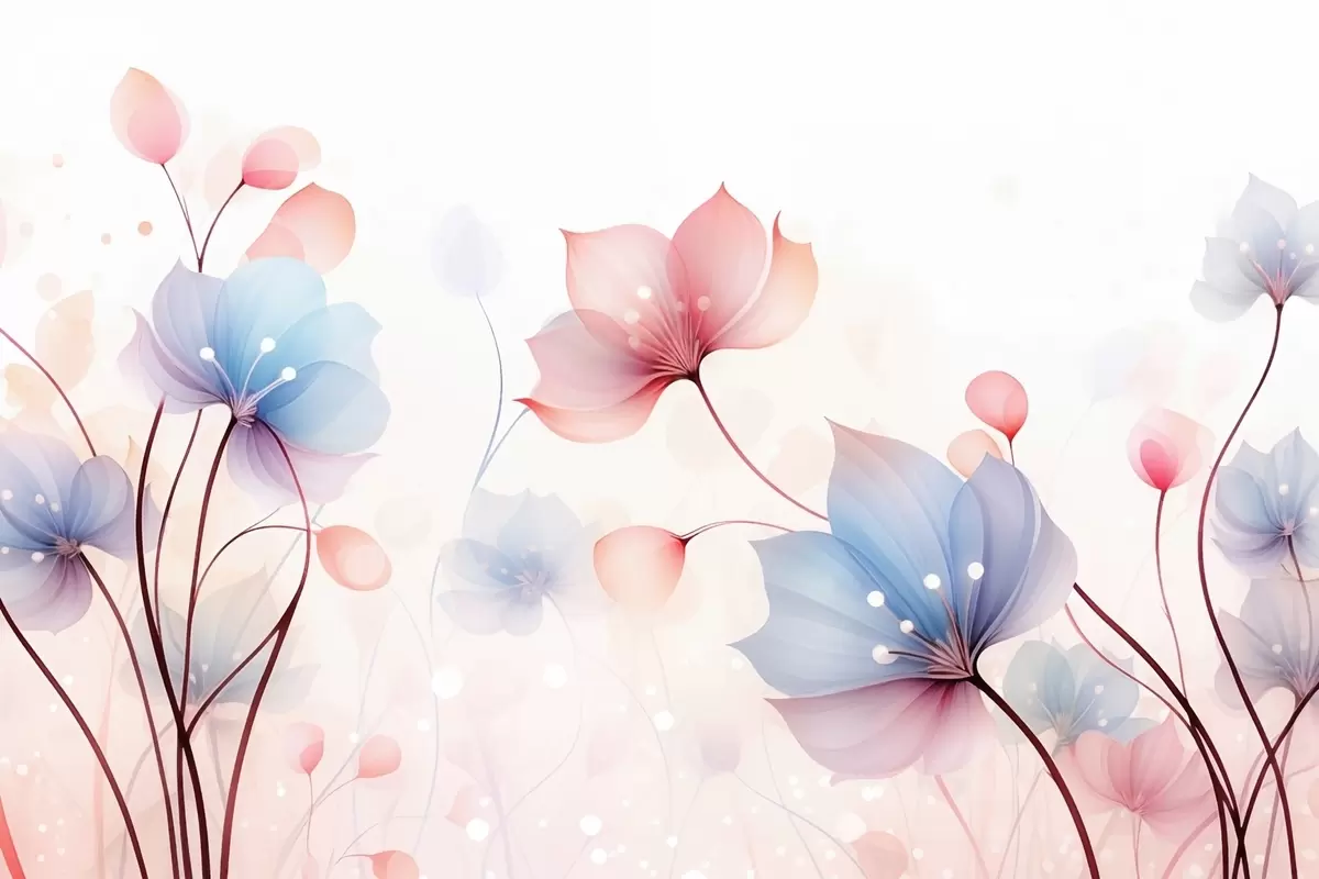 Тапете за зид Нежно ружичасто-плаво цвеће — прозрачна флора на белој акварелној позадини бр. w09507