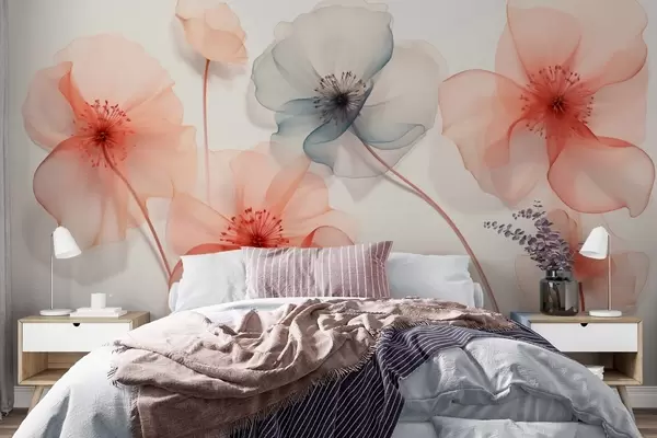 Тапете за зид Прозирно цвеће у црвеним и плавим тоновима бр. w09515