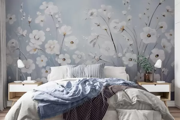 Тапете за зид Бело цвеће на плавом небу у стилу уљаног сликарства бр. w09516