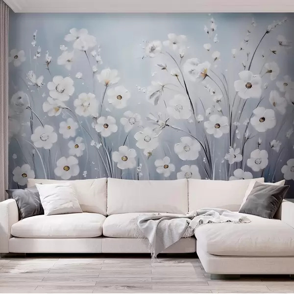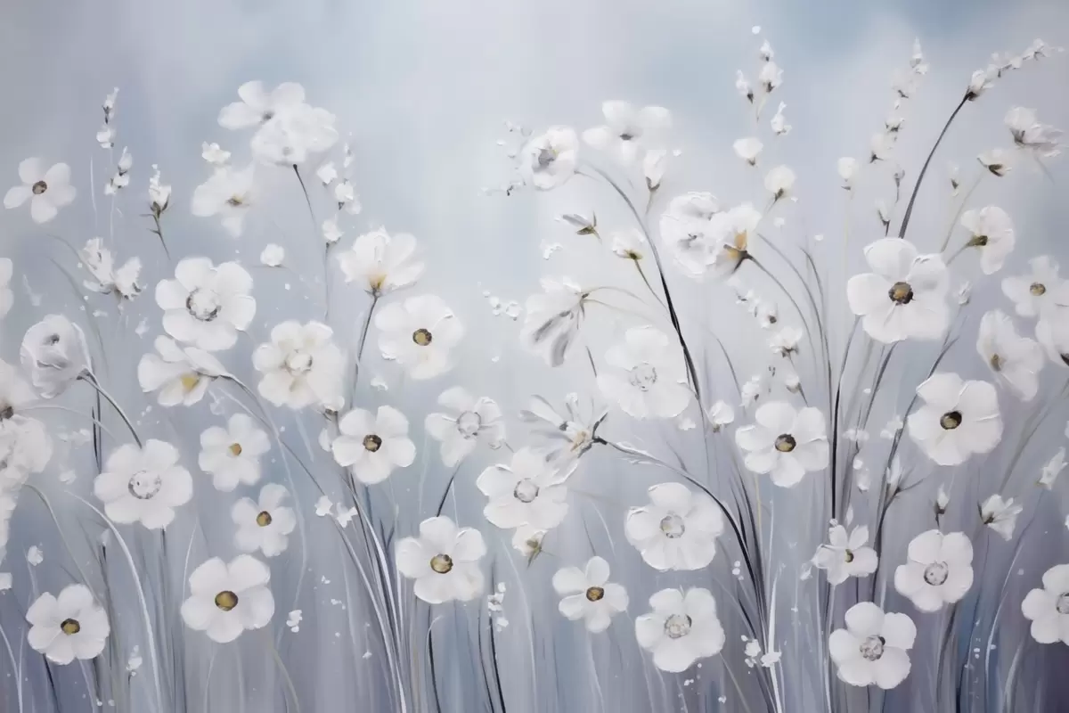 Тапете за зид Бело цвеће на плавом небу у стилу уљаног сликарства бр. w09516