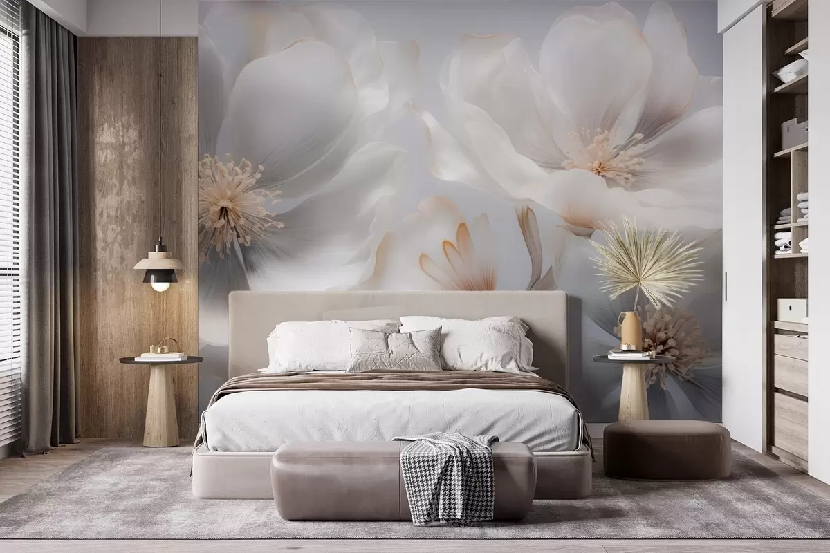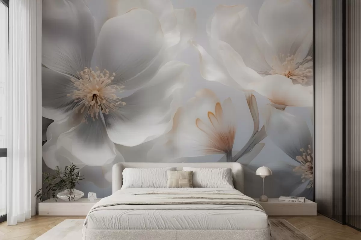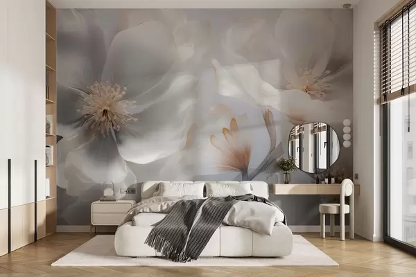 Тапете за зид Седефасто цвеће у беж-сивим и млечно-крем нијансама бр. w09527