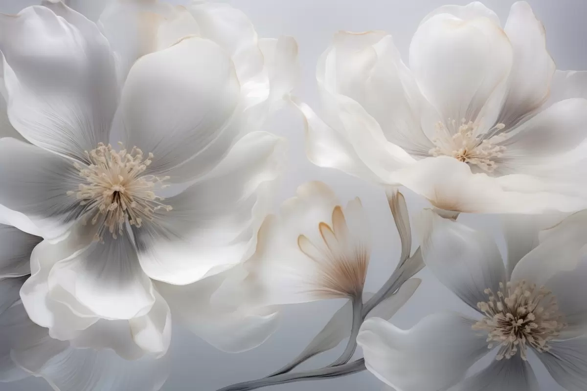 Тапете за зид Седефасто цвеће у беж-сивим и млечно-крем нијансама бр. w09527