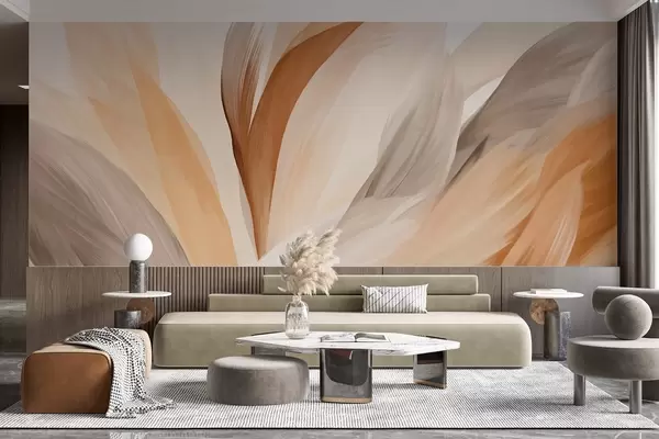 Тапете за зид Апстрактно текстурирано перје у смеђој, белој и сивој боји и разним нијансама, које се преклапају на белој позадини бр. w09531