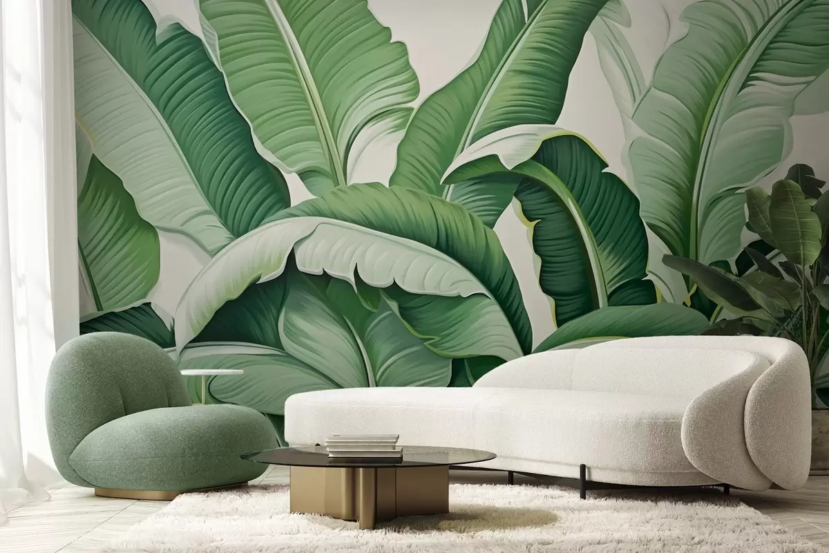 Тапете за зид Зелени тропски листови банане са 3Д ефектом бр. w09559