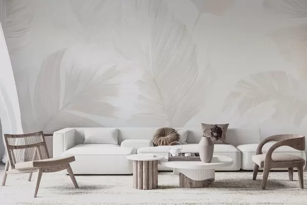 Тапете за зид Меко перје боје слоноваче у млечно беж тоновима бр. w09563