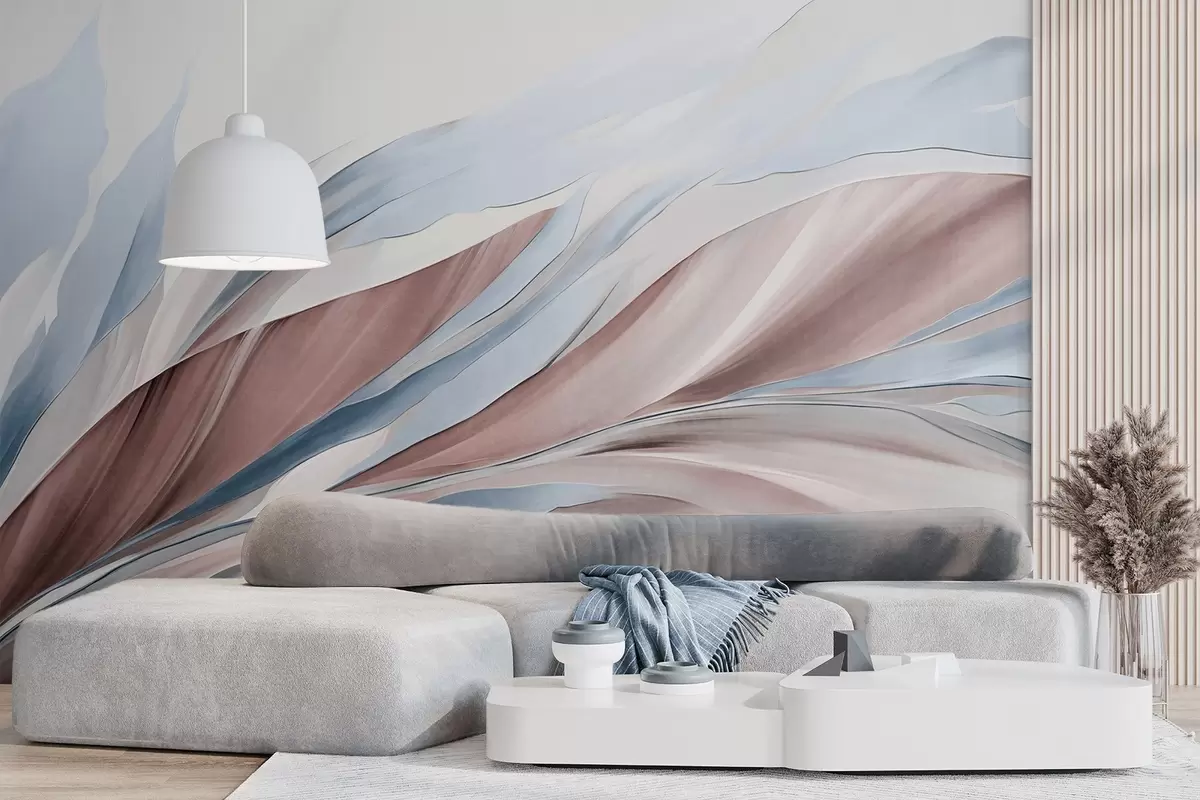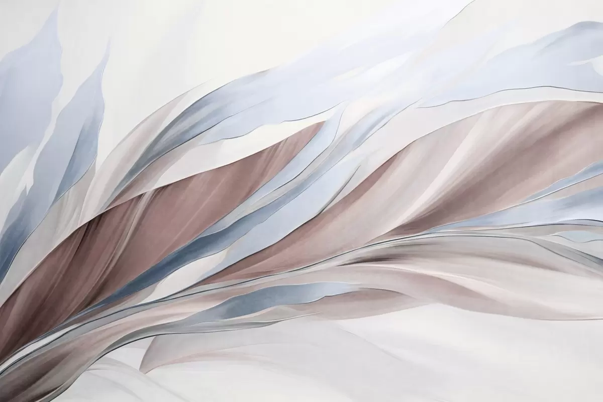 Тапете за зид Апстрактни текући таласи плаве и браон боје, са танким облицима и линијама, на белој позадини, текстурирана уметност бр. w09585v1