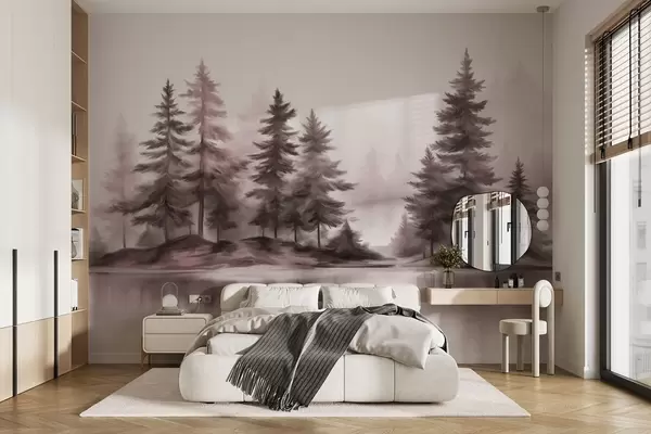 wall murals Текстурирана магловита шума са високим боровима, имитација сликања w09610v1