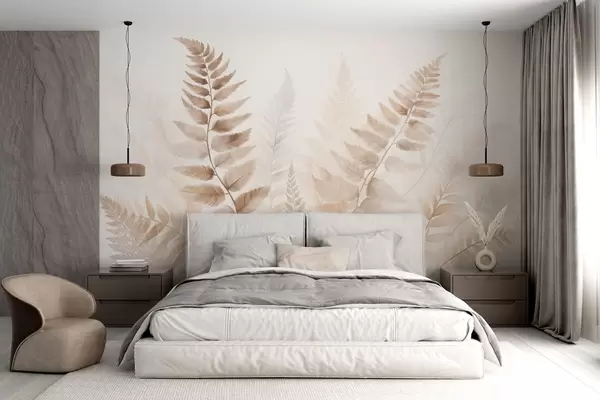 wall murals Текстурирани сушени листови папрати у различитим нијансама смеђе, са меком, светлом позадином у стилу акварела w09615