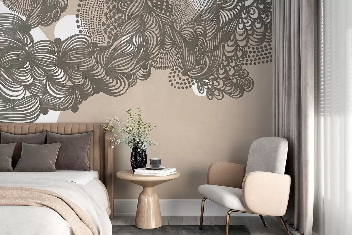 Тапете за зид Апстрактни текстурирани дизајн на беж позадини, са замршеним линијским радом и тачкастим текстурама бр. w09621