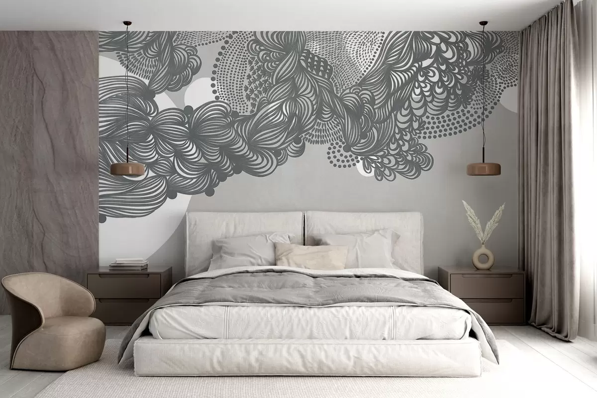 Тапете за зид Апстрактни текстурирани дизајн на сивој позадини, са замршеним линијским радом и тачкастим текстурама бр. w09621v1