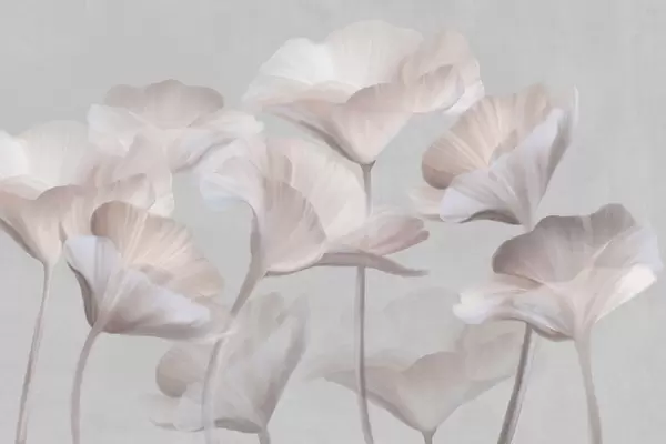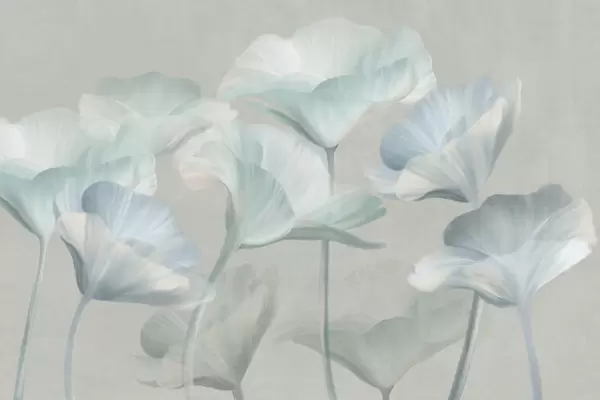 Тапете за зид Бледо ружичасти текстурирани провидни цветови лотоса са нежним латицама на пригушеној сивој позадини бр. w09640v1