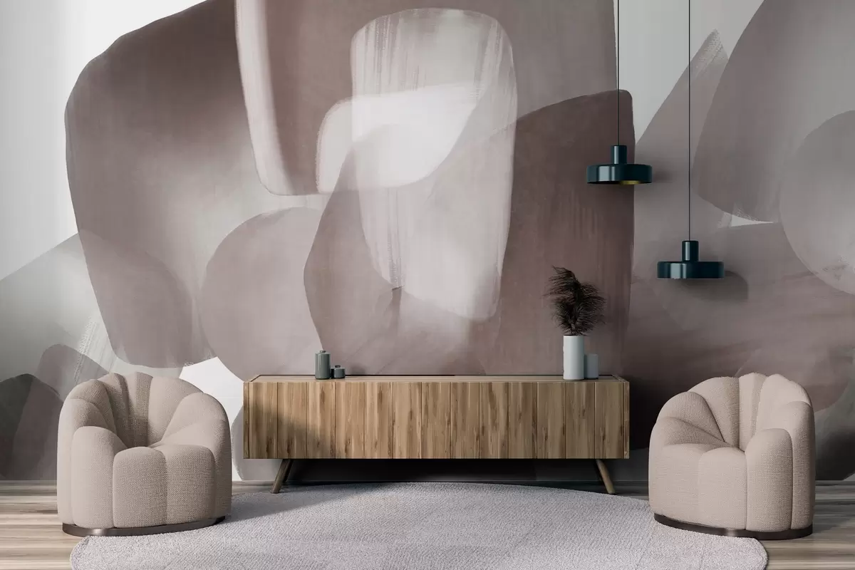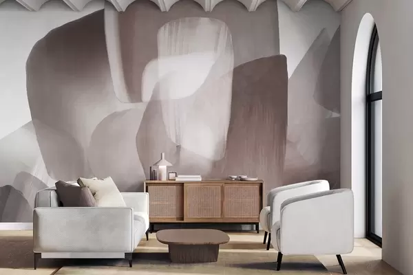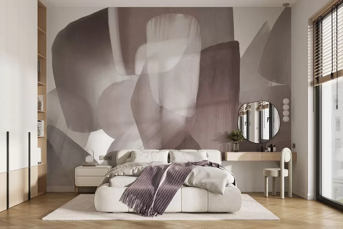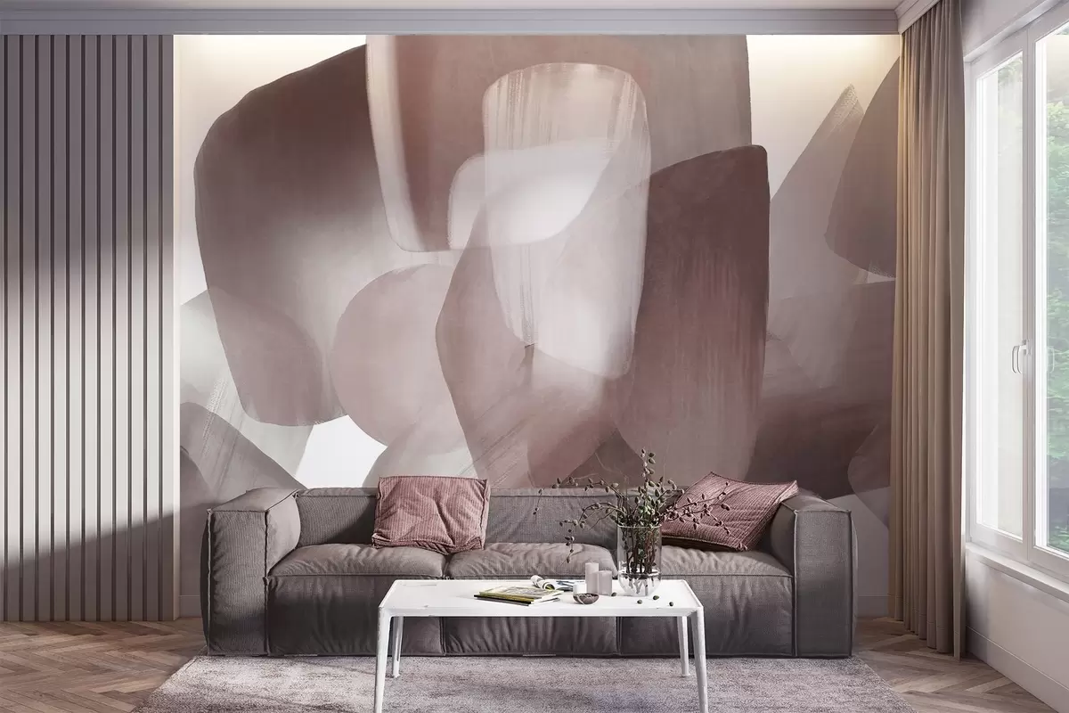 Тапете за зид Апстрактни текстурирани облици у пригушеним бордо и сивим бојама, са меким ивицама и преклапајућим слојевима бр. w09642v2