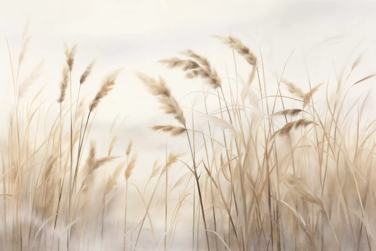 Тапете за зид Висока, текстурирана сува трава са класјевима пшенице на пољу на мекој, бледој позадини бр. w09648