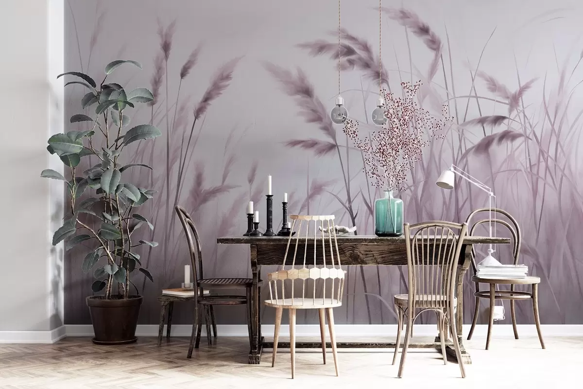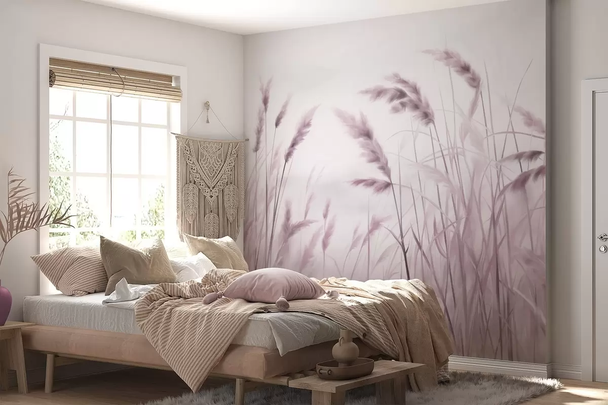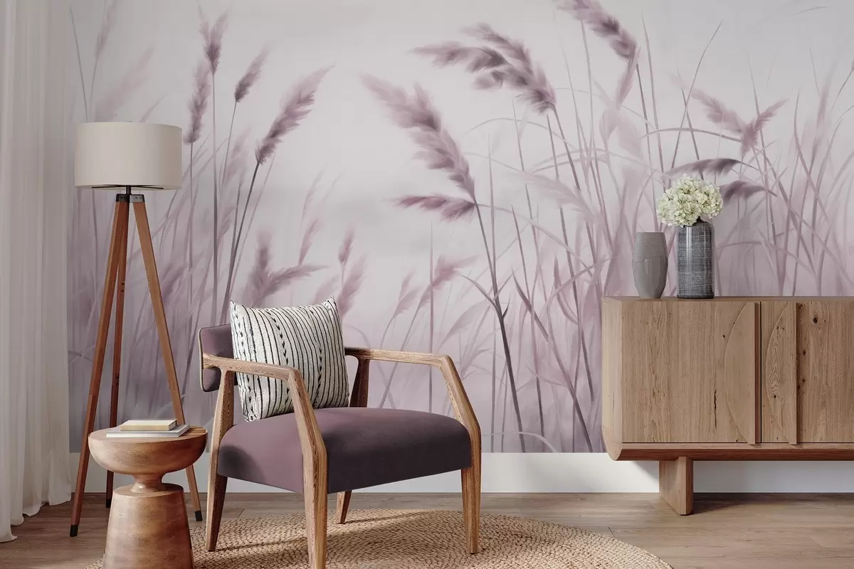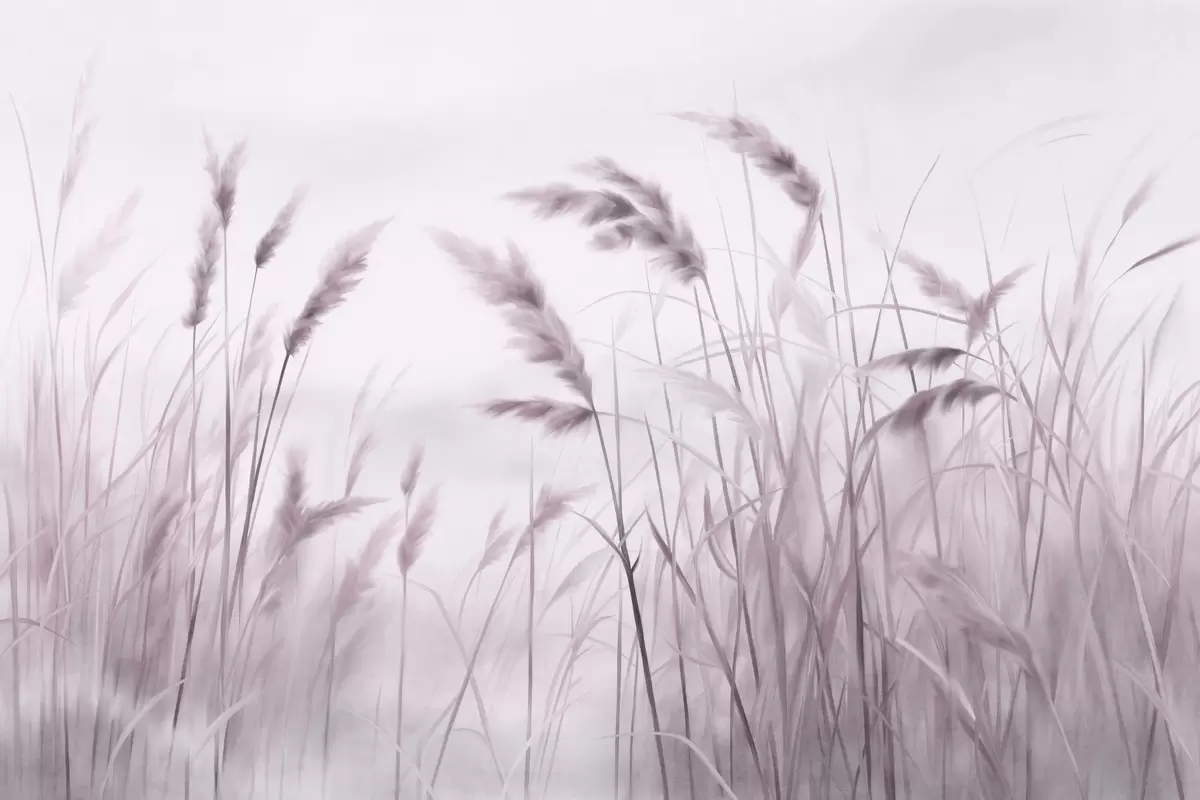 Тапете за зид Висока, текстурирана сува трава са класјевима пшенице на пољу на мекој, бледој позадини бр. w09648v2