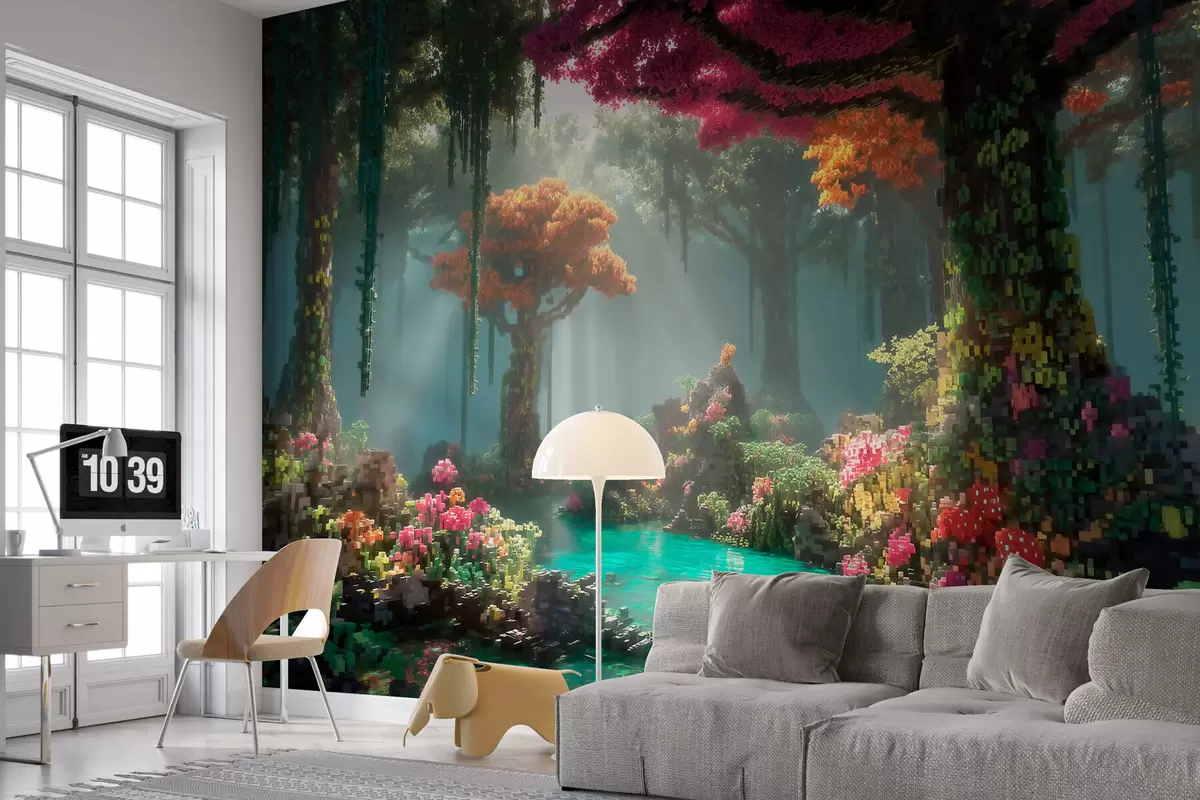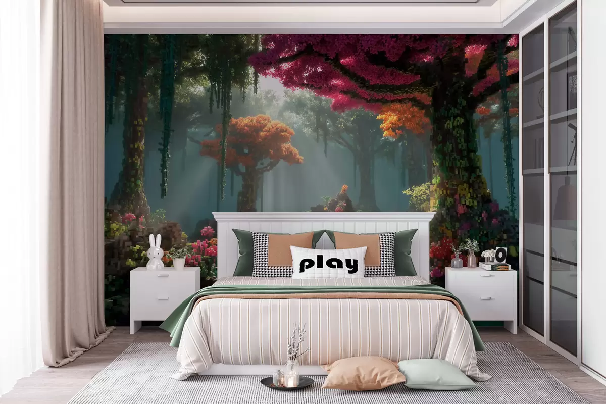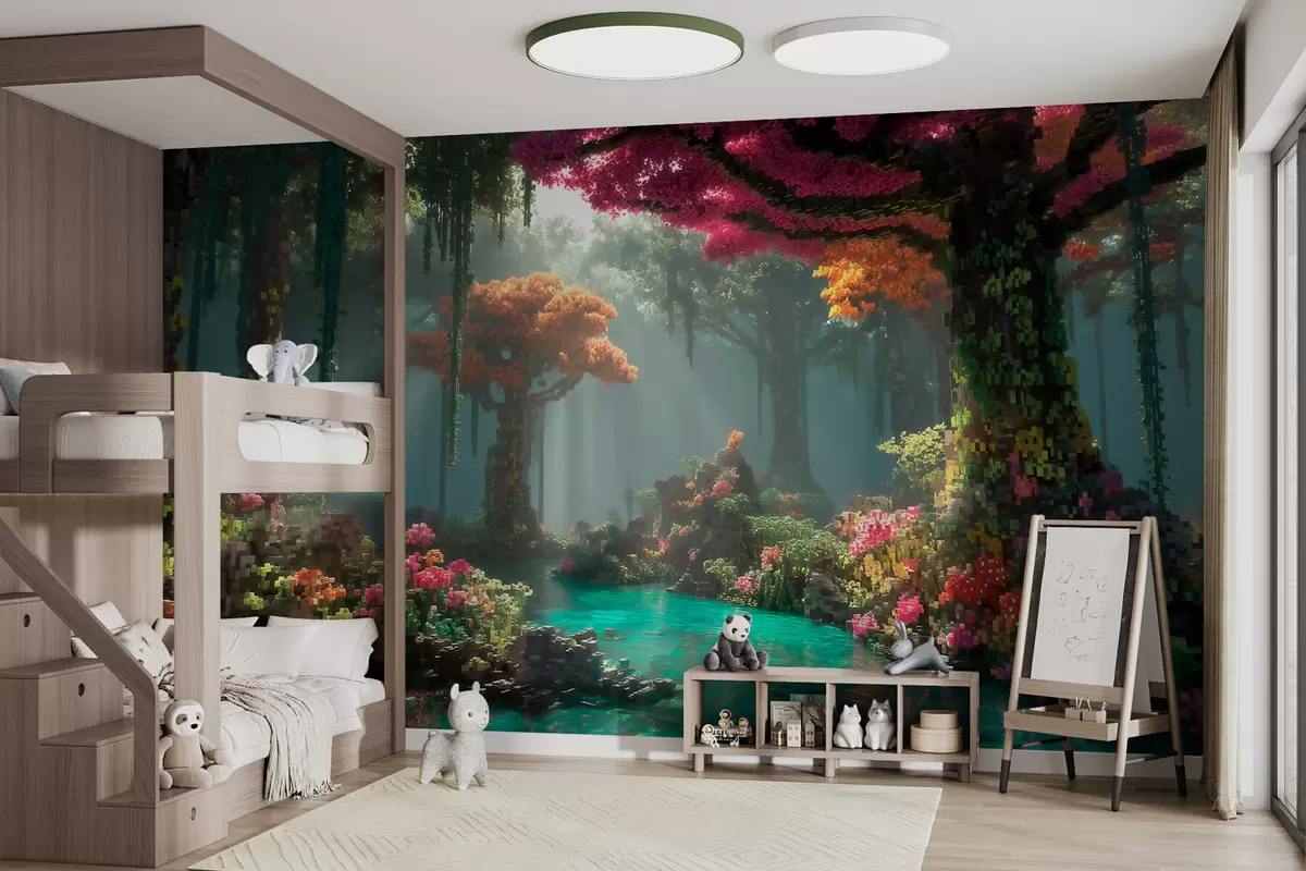 Тапете за зид Пиксел зачарани шумски гај инспирисан видео играма бр. w09683