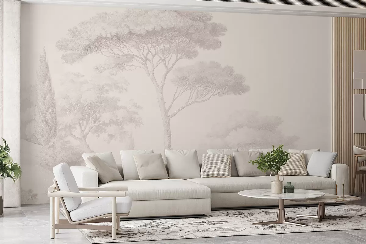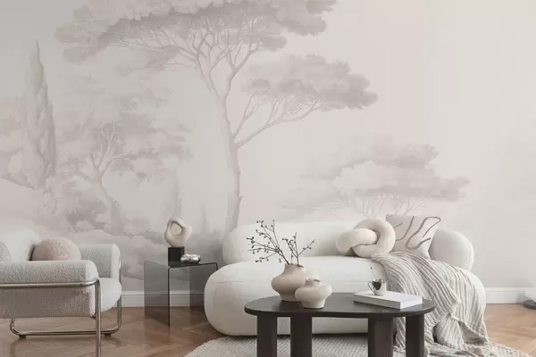 Тапете за зид Мирни шумски пејзаж у беж палети боја бр. w09685