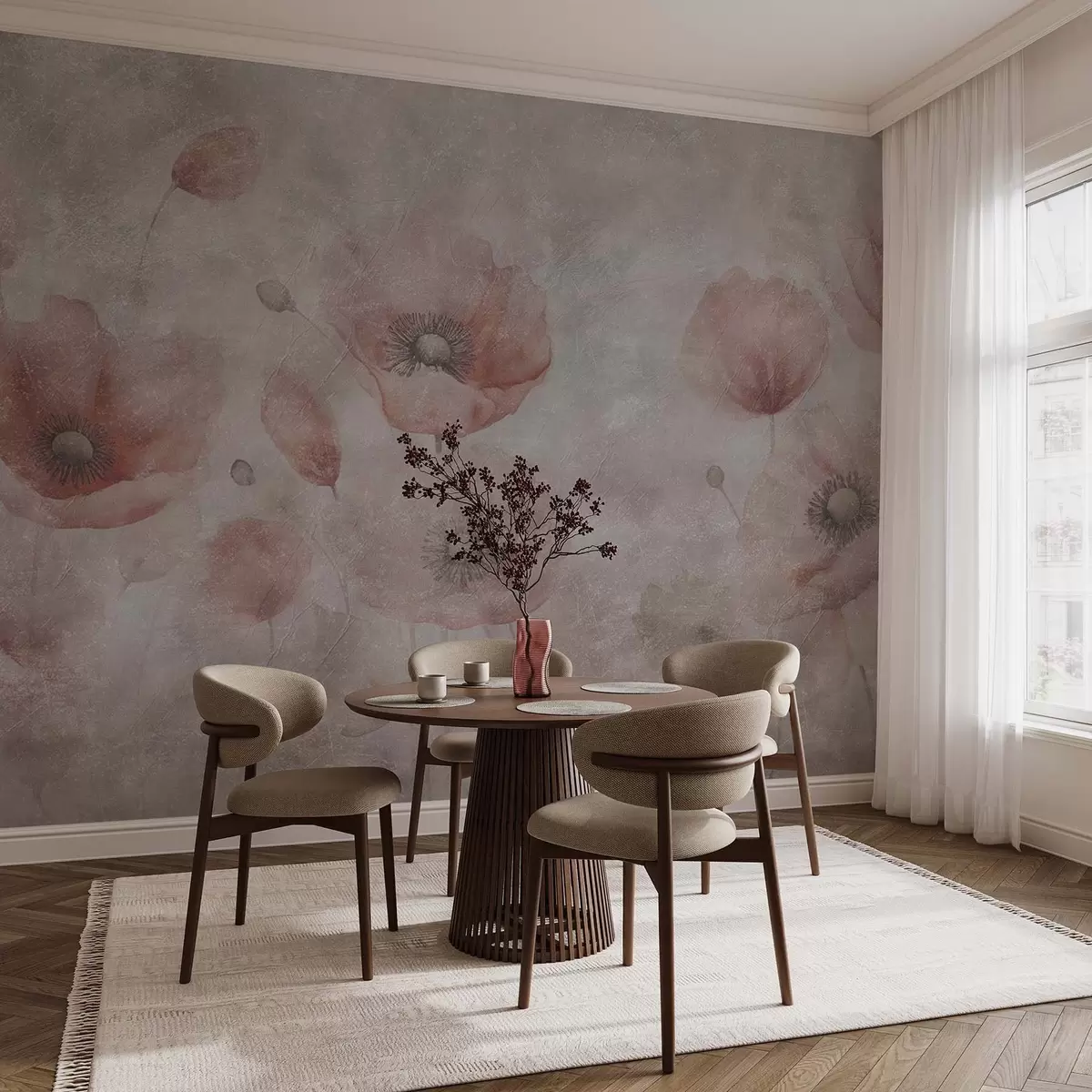 wall murals Велики цветови мака на зиду са античким ефектом w09686
