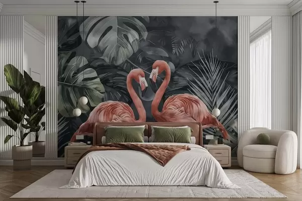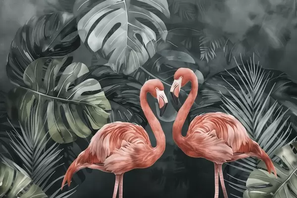 Тапете за зид Пар фламинга у тропским биљкама бр. w09687