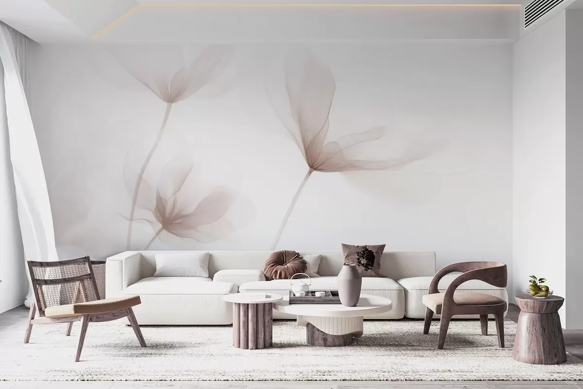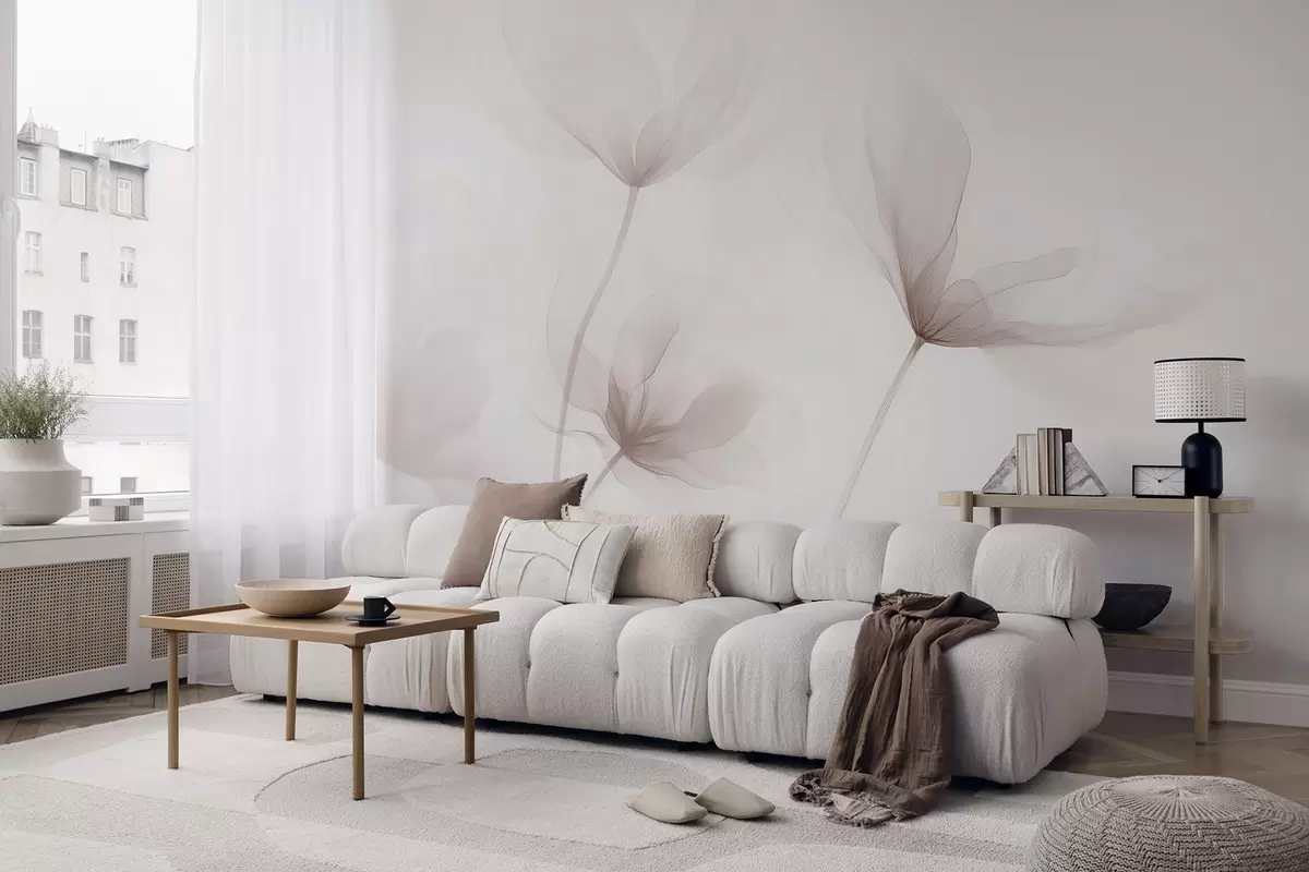 Тапете за зид Прозрачно беж цвеће у минималистичком светлом стилу бр. w09734
