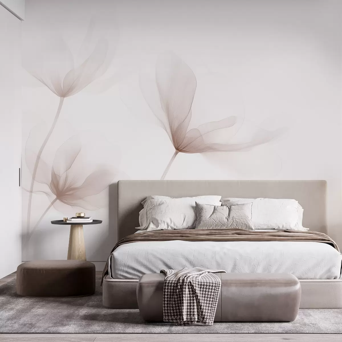 Тапете за зид Прозрачно беж цвеће у минималистичком светлом стилу бр. w09734