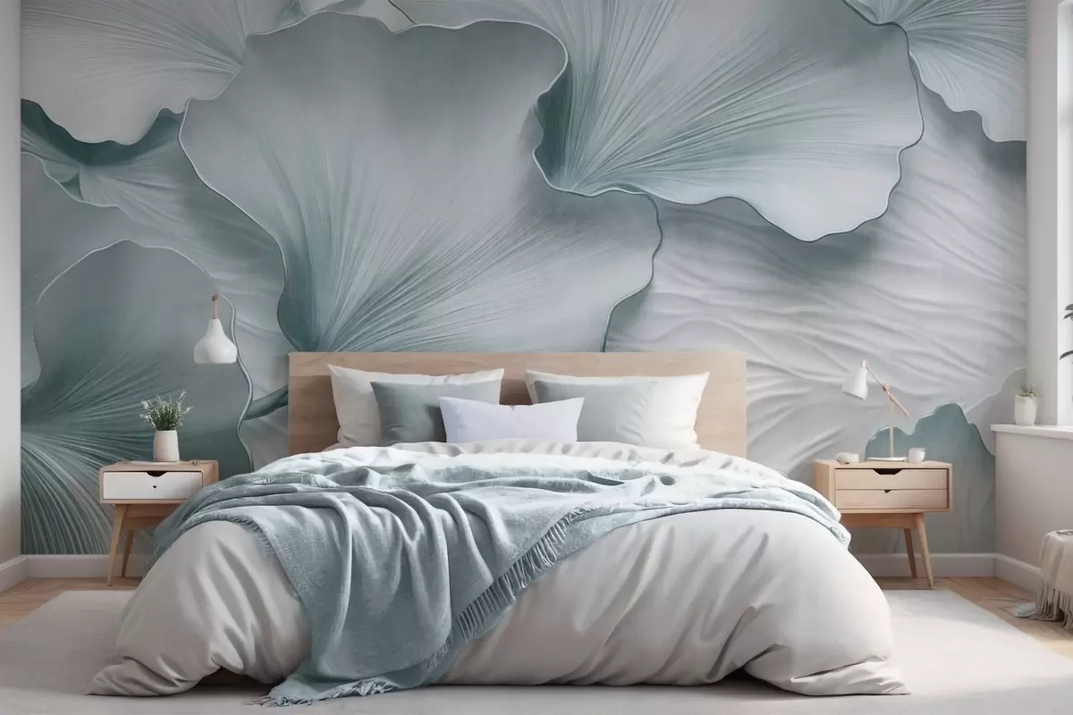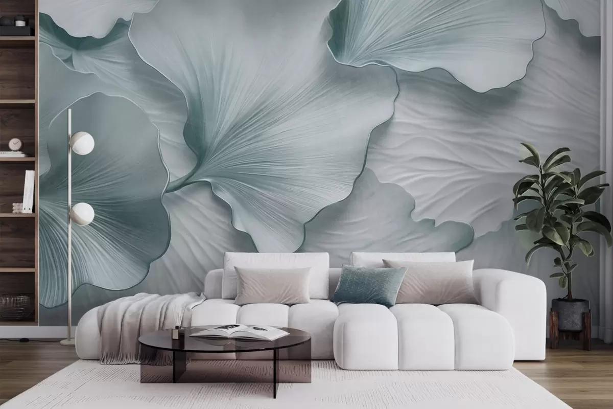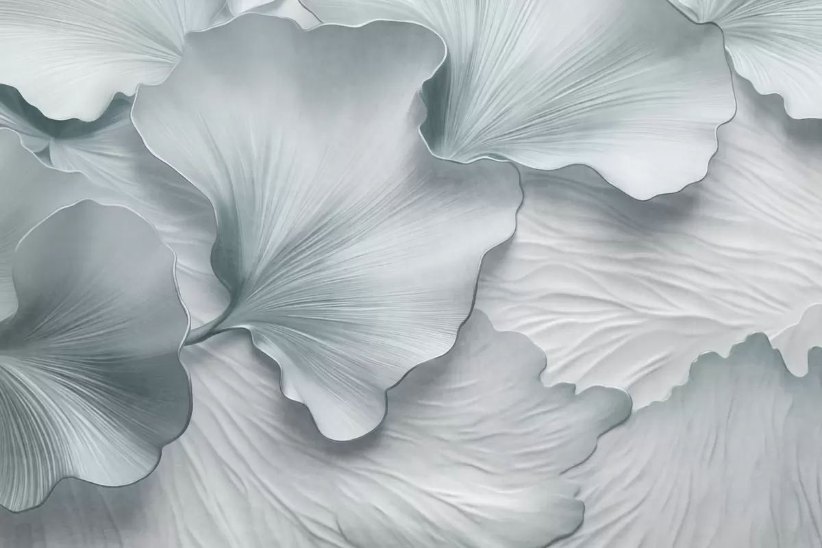 Тапете за зид Текстуриране, плаво-беле латице листова гинка са нежним органским принтом бр. w09741v1