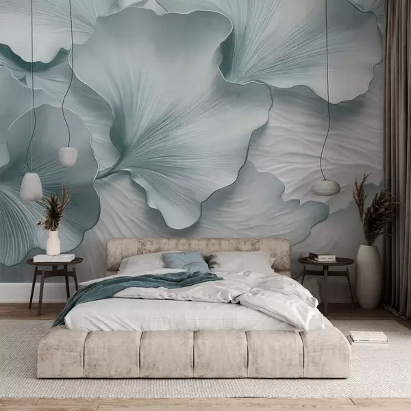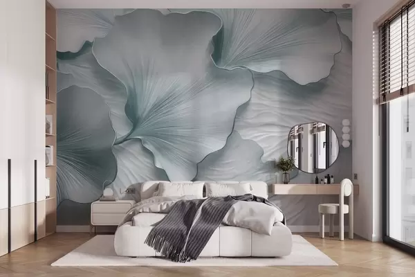 Тапете за зид Текстуриране, плаво-беле латице листова гинка са нежним органским принтом бр. w09741v1