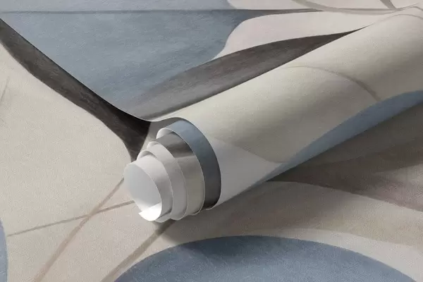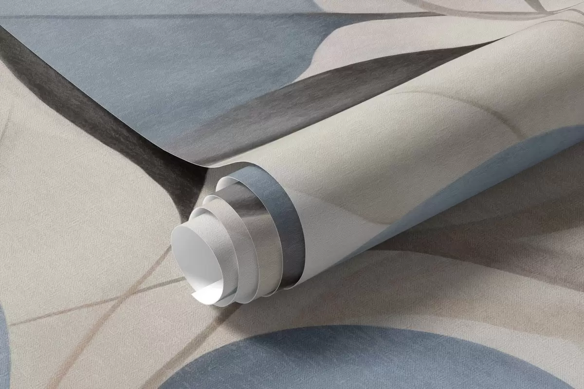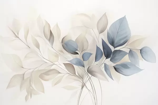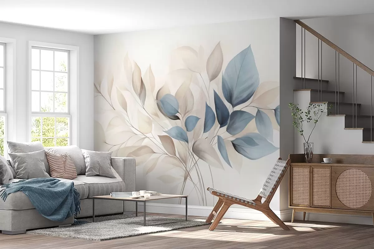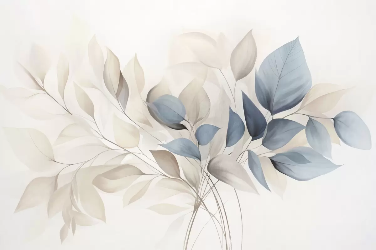 Тапете за зид Апстрактни провидни листови у нијансама плаве, беж и кремасте, текстурирана уметност бр. w09744