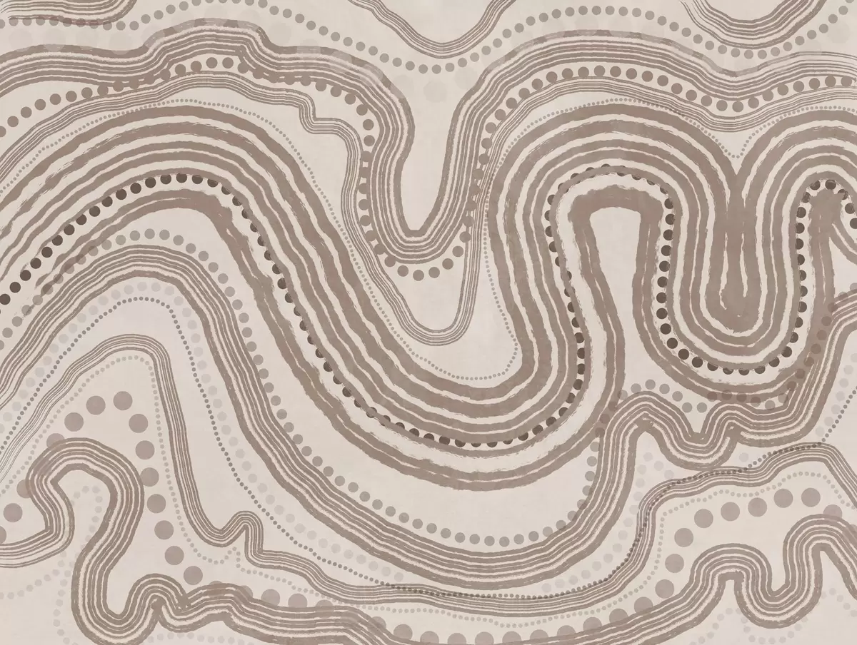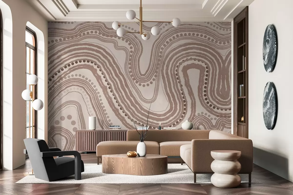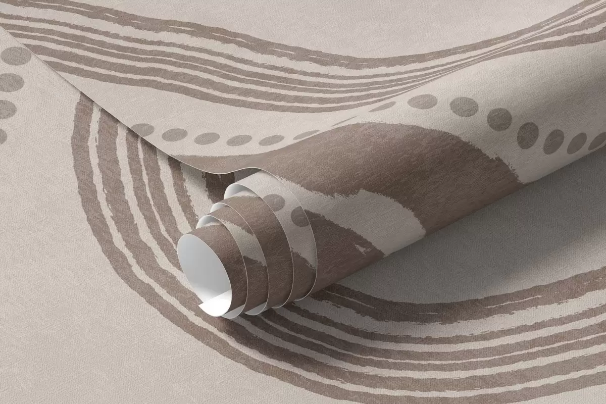 Тапете за зид Апстрактне смеђе и беж таласасте линије и тачке, модерна текстурирана уметност бр. w09747v1