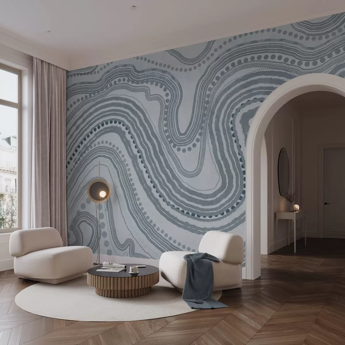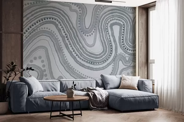 Тапете за зид Апстрактне плаве таласасте линије и тачке, модерна текстурирана уметност бр. w09747v3