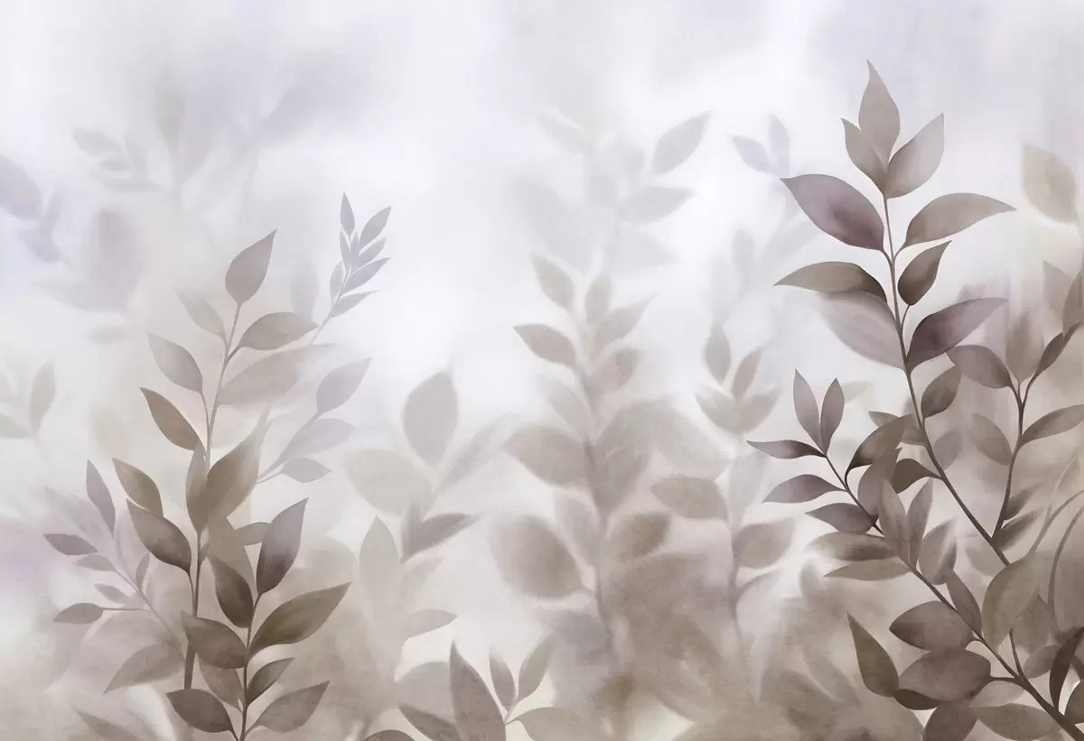Тапете за зид Нежне гране са пригушеним смеђим и беж листовима, стил акварела, текстурирана уметност бр. w09750